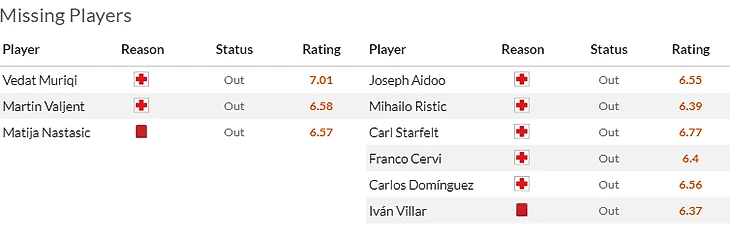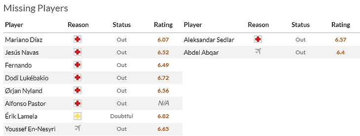 Но на самом деле кадровая ситуация у хозяев- аховая. В прошлом туре поломался Гудель(6,5) который теперь вернется только весной, рецидив заработал Маркос Акунья(6,5), до сих пор в лазарете Эрик Ламела(7,5). Из хороших новостей разве что возвращение в заявку Мариано(7) и Хесуса Наваса(6).