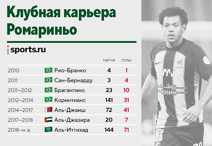 Например, в «Аль-Иттихаде» играет бразилец Ромариньо. У человека абсолютно выдающаяся карьера: в 23-24 он сверкнул в Бразилии, но не поехал ни в «Шахтер», ни в «Порту», ни в запас «Манчестер Сити».