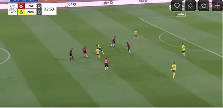 К середине тайма релакс звезд «Аль-Насра» сменяется на озабоченность: до игроков доходит, что надо напрячься. Правда, это помогает не сразу – моменты продолжает создавать только «Аль-Раед».