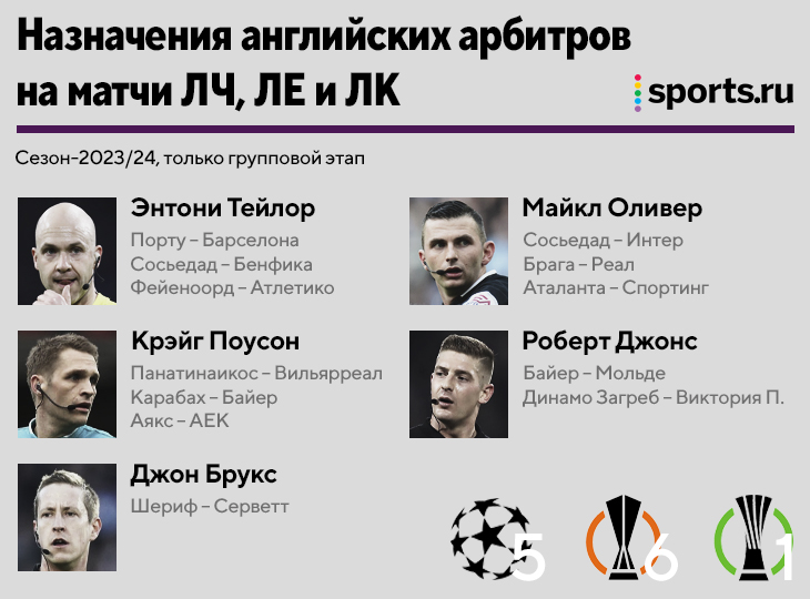 Косвенное подтверждение сомнительной репутации английских арбитров – редкие назначения на матчи еврокубков. В этом сезоне к работе в трех турнирах (ЛЧ, ЛЕ, ЛК) привлекли лишь пять арбитров, суммарно отсудивших только 12 матчей.