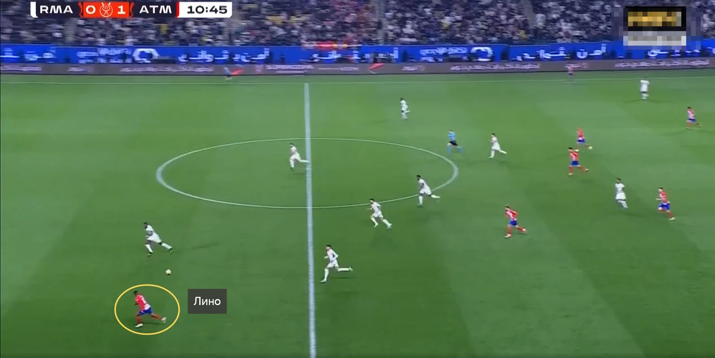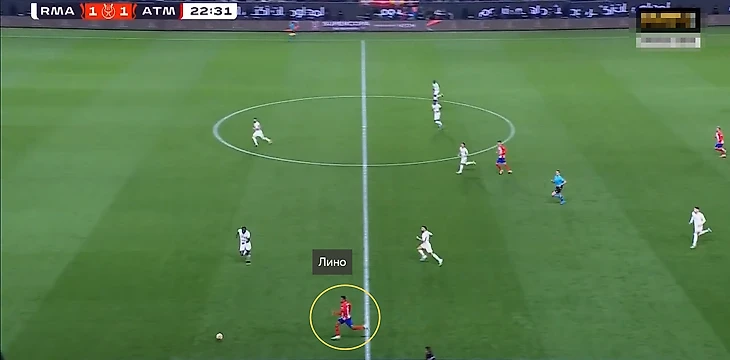 Частым адресатом передач при выходе из обороны в атаку становился Лино. Бразилец располагался в более высокой и широкой позиции, что периодически позволяло выходить через него на чужую половину поля.