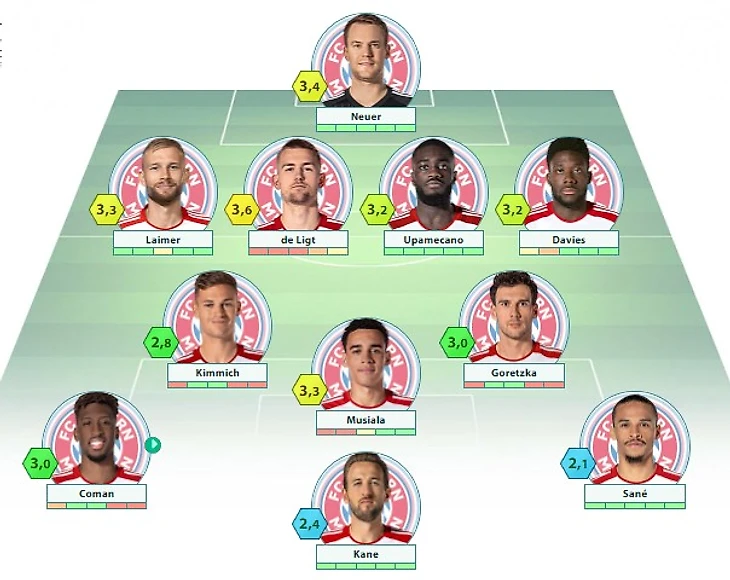 «Бавария»: Нойер (c) – Лаймер, де Лигт, Упамекано, Дэвис – Киммих, Горетцка – Сане, Мусиала, Коман – Кейн