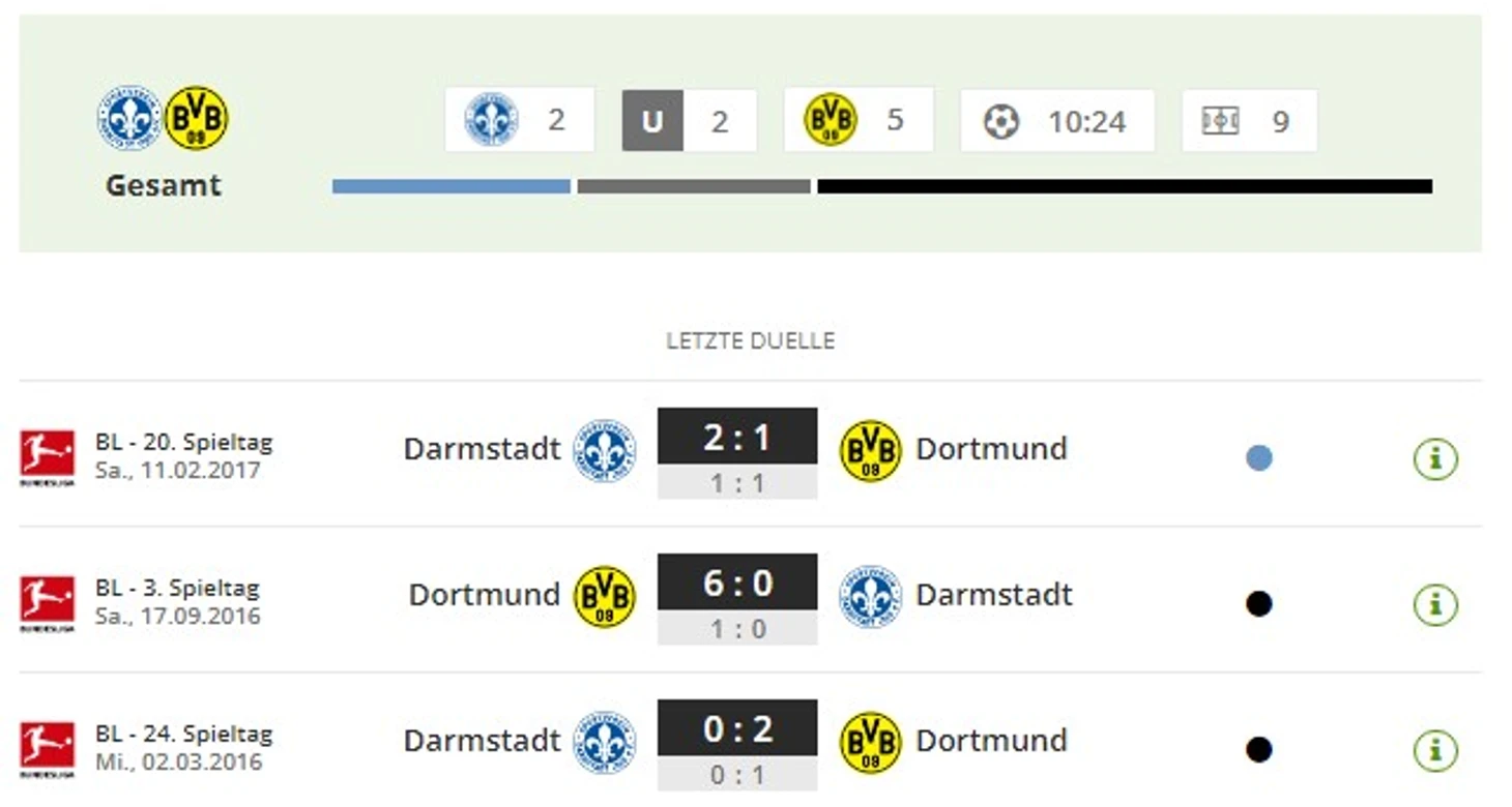 - Также «Боруссия» остается без побед в последних четырех выездных матчах чемпионата.Последний раз «шмели» привозили три очка с чужого стадиона 3,5 месяца назад – 29 сентября, когда обыграли со счетом 3:1 «Хоффенхайм».