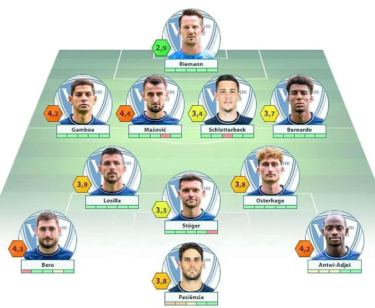 «Бохум»: Риманн – Гамбоа, Машович, К. Шлоттербек, Бернардо – Остерхаге, Лосилла (c), Штегер – Беро, Пасиенсия, Антви-Аджей