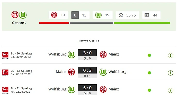 - «Вольфсбург» выиграл три последних встречи в рамках Бундеслиги у «Майнца» с общим счетом 11:0.