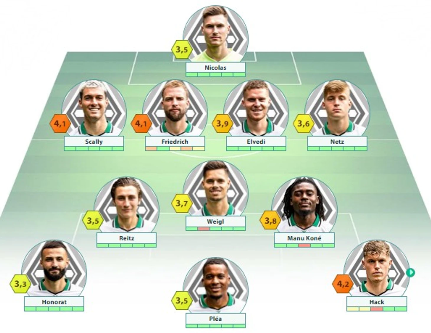 «Боруссия» Менхенгладбах: Николас – Скалли, Эльведь, Фридрих – Вайгль (c) – Онора, Райтц, Коне – Нетц – Плеа, Хак