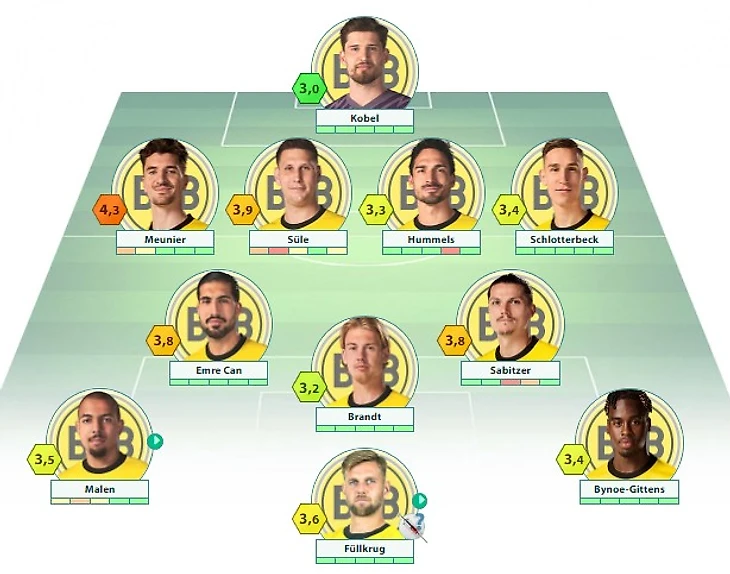 «Боруссия» Дортмунд: Кобель – Менье, Зюле, Хуммельс, Н. Шлоттербек – Забитцер, Джан (c), Брандт, Мален, Фюллькруг, Байно-Гиттенс