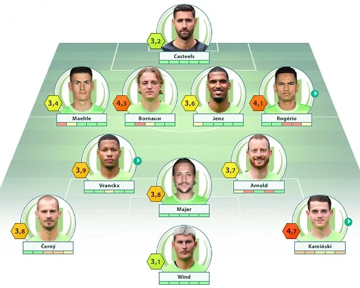 «Вольфсбург»: Кастельс – Борнаув, Йенц, Цезигер – Вранкс – Баку, Арнольд (c), Сванберг, Мэле – Маер –Винд