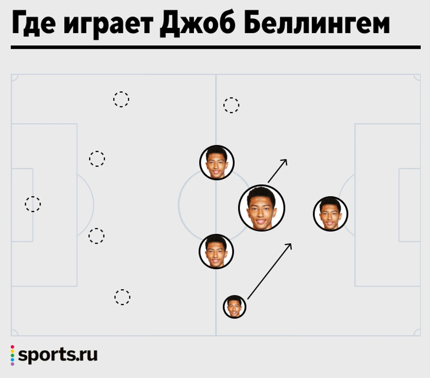 В итоге в большинстве матчей сезона Джоб играет десятку, хотя успел провести по паре игр восьмеркой (каждый раз – в новой схеме: 4-4-2, 4-1-4-1 и 3-4-3) и в роли единственного форварда. На позиции десятки Беллингем-младший любит смещаться в левый полуфланг для получения мяча.