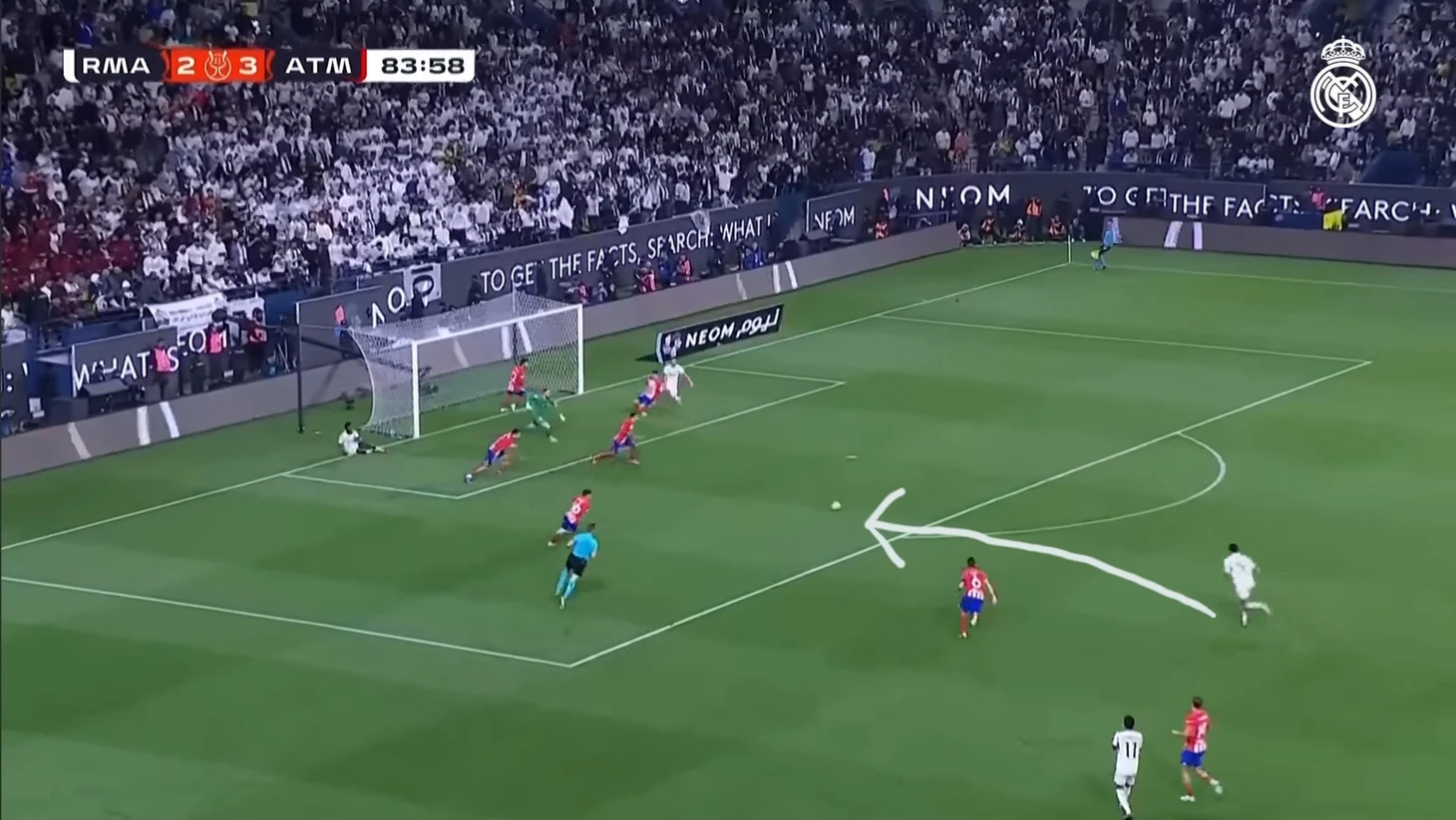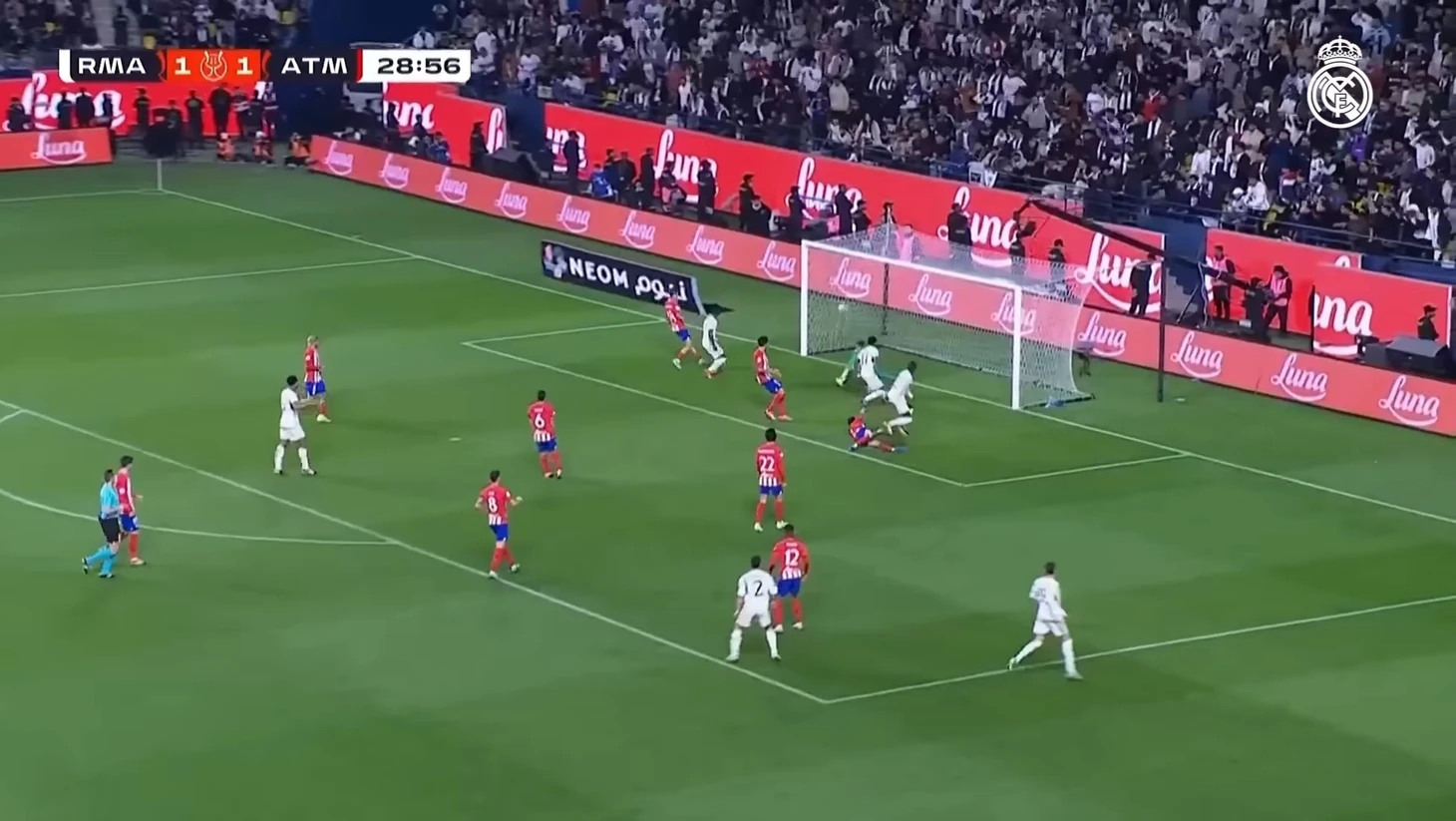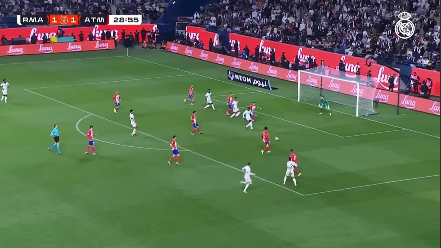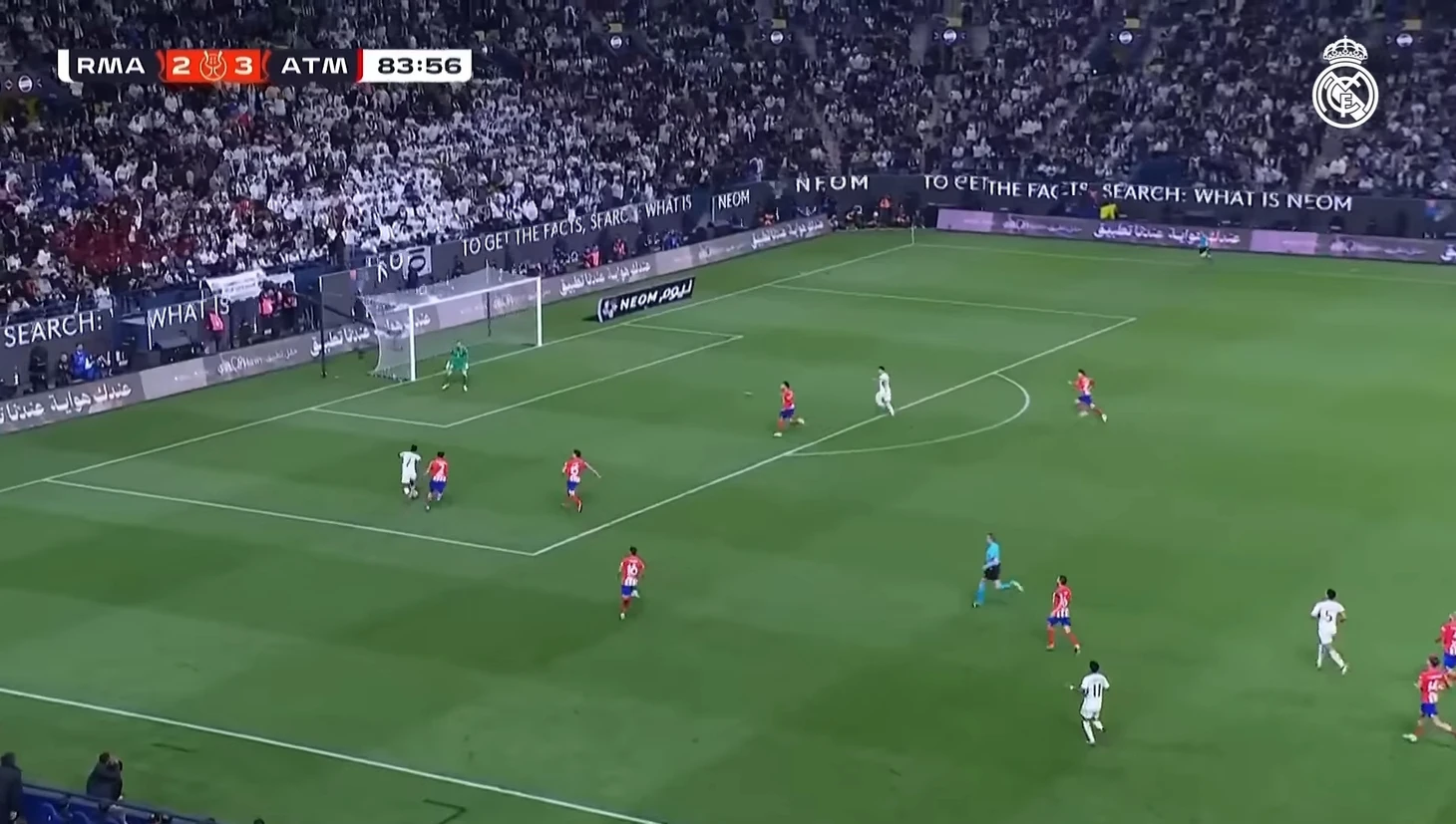 Карло Анчелотти учёл все предыдущие ошибки матча с «Атлетико» в Ла Лиге. Дело в том, что в сентябрьском дерби «Реал» использовал схему 4-3-2-1( ёлочку) и у «Атлетико» был один и тот же ход для вскрытия обороны «Мадрида». Навесы на Морату были очень эффективны. В Суперкубке «Реал Мадрид» использовал в обороне схему 4-4-2. Вальверде и Беллингем закрывали фланги, поэтому в этом матче «Реал» был намного устойчивей чем в дерби.