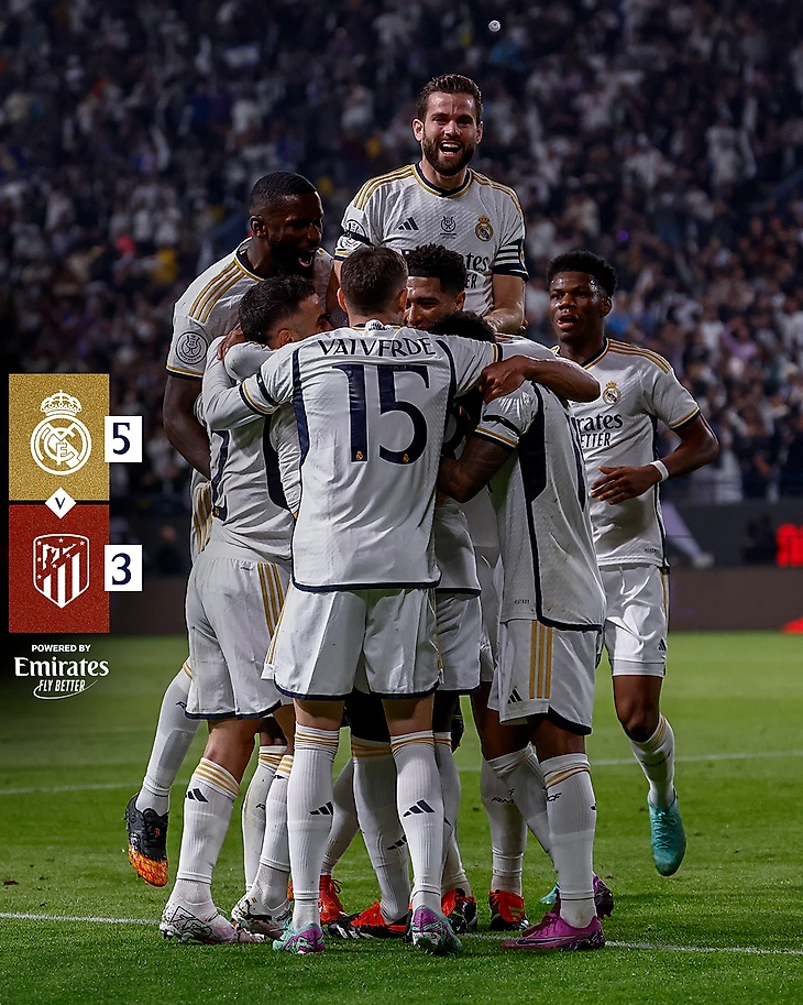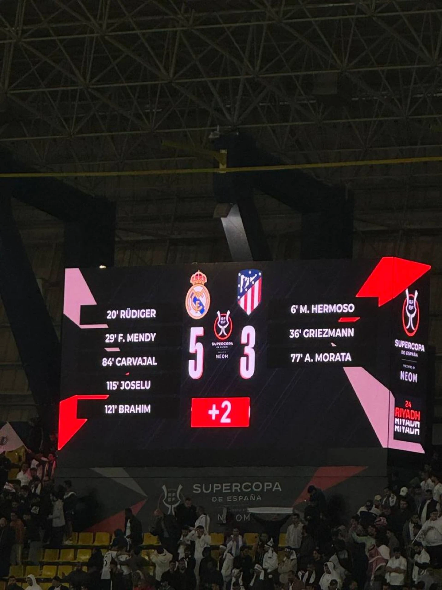 «Реал Мадрид» обыграл «Атлетико Мадрид» в рамках полуфинала Суперкубка Испании со счётом 5:3 и вышел в финал, где сыграет с «Барселоной».