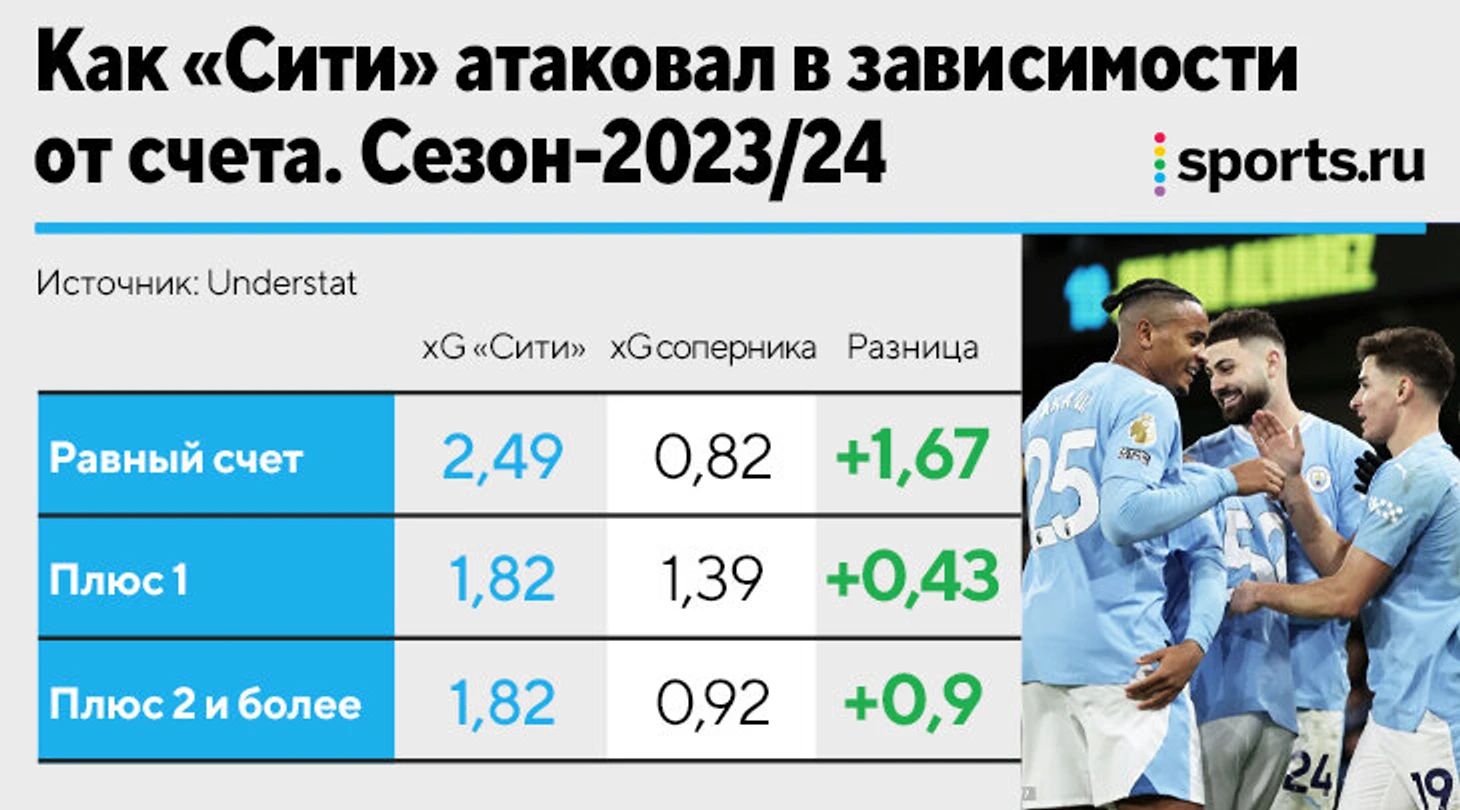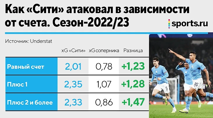 Вот характерное сравнение с прошлым сезоном. Тогда «Сити» получал больше моментов, поведя в счете.