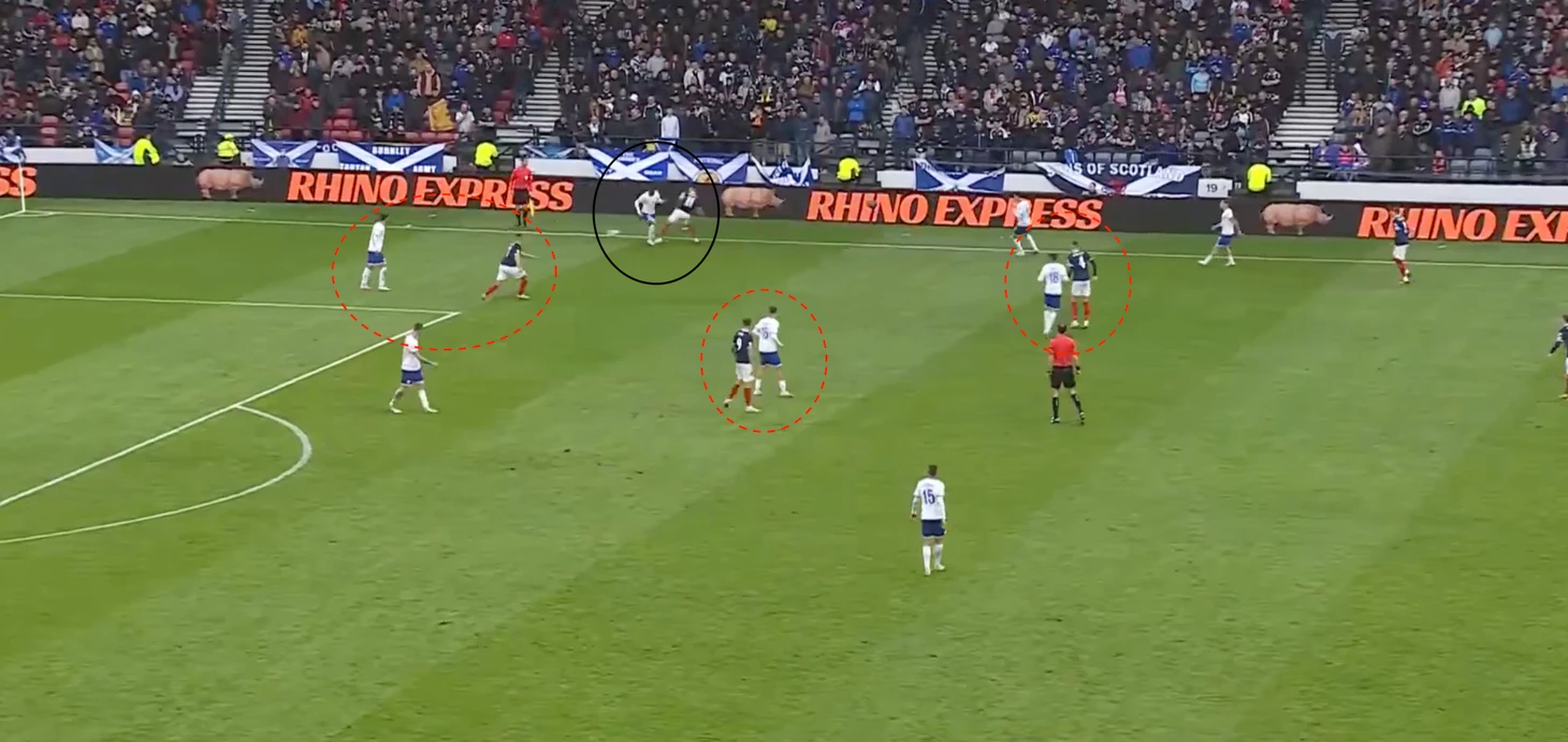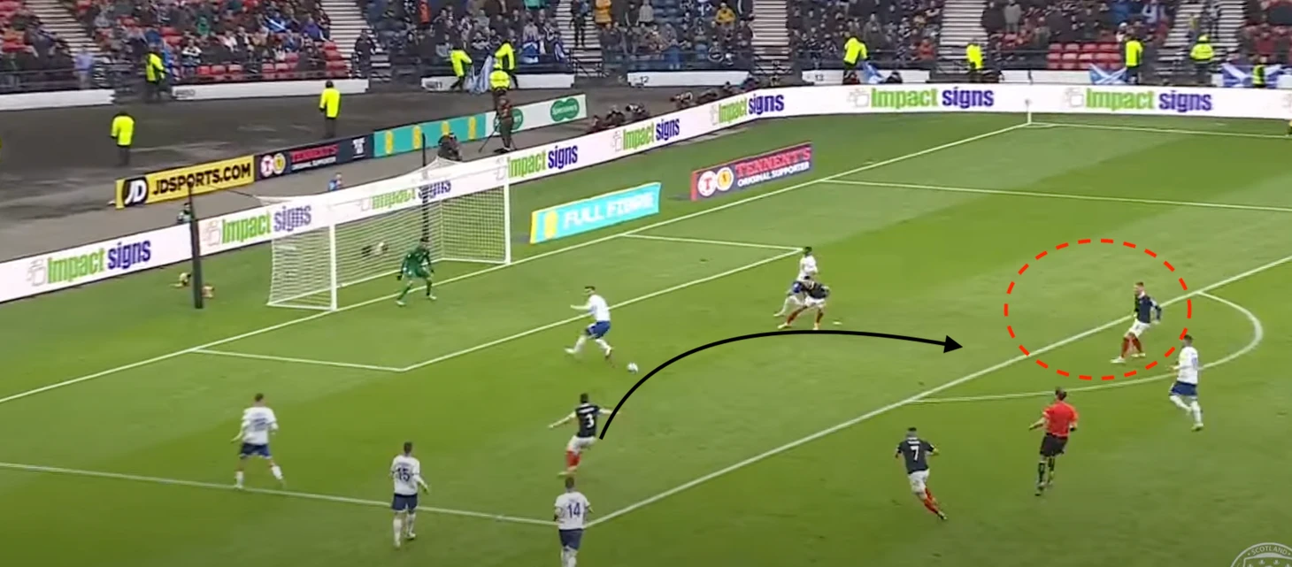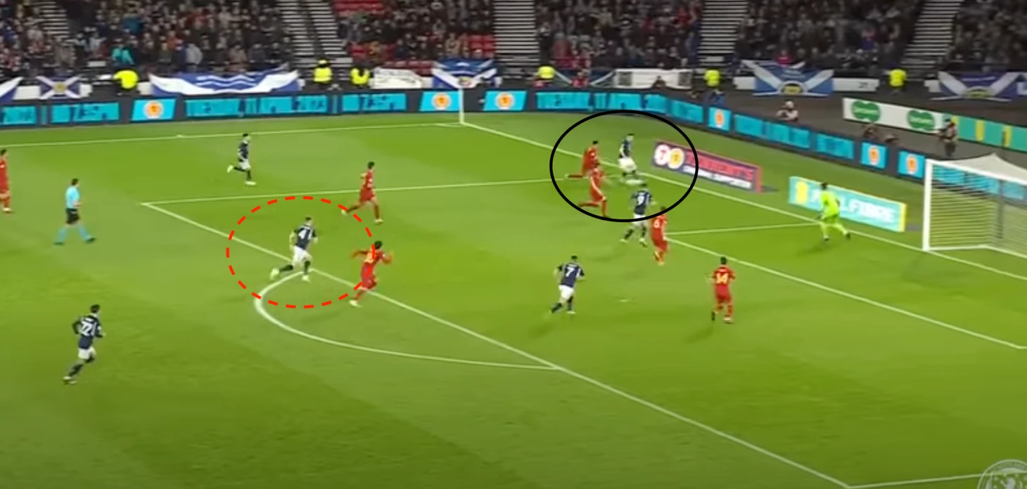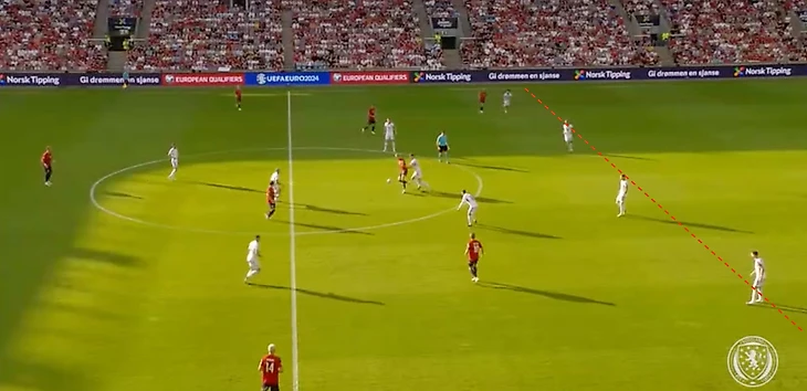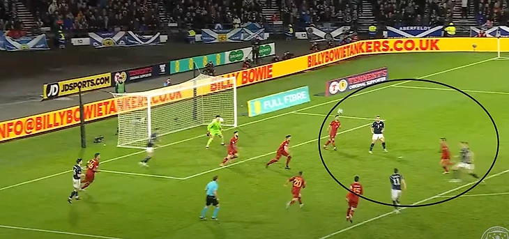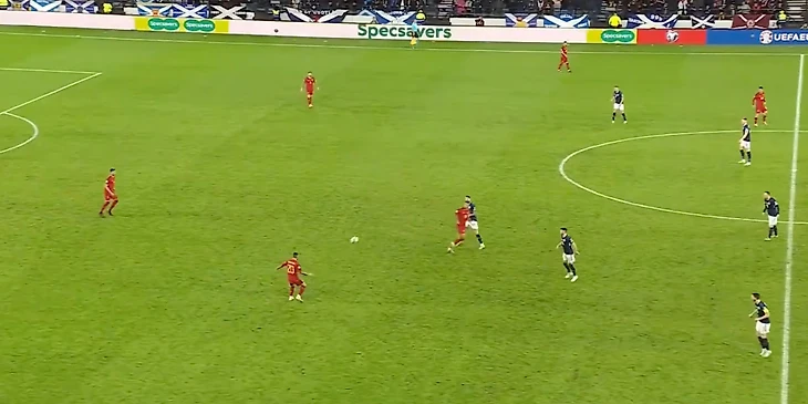 Шотландцы «загоняли» в отборочном цикле Кипр и чуть более техничную Норвегию. При этом важно понимать, что у «тартановой армии» есть план, а не только скорость. Его суть в поиске свободных зон и подключении флангов (в две волны).