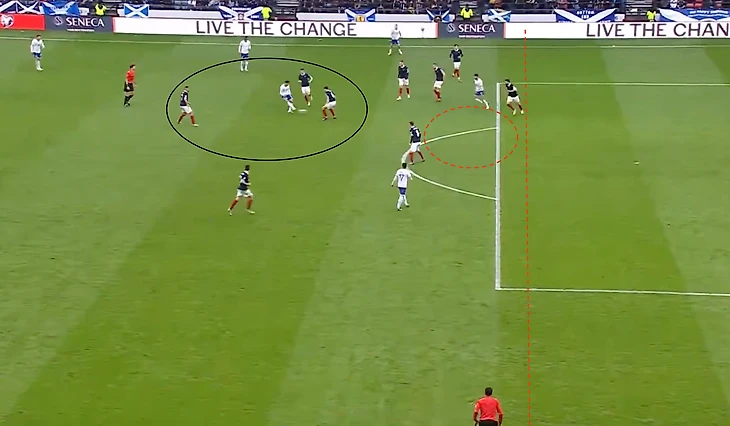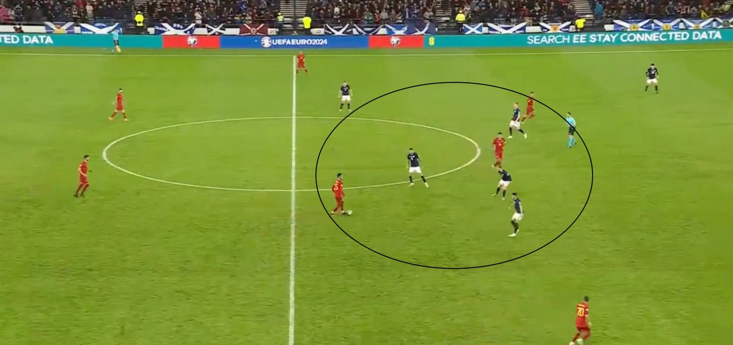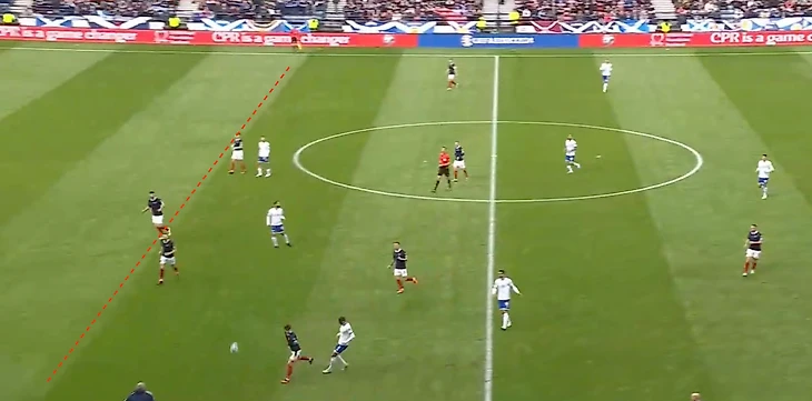 Это не означает, что шотландцы никогда не прижимаются к собственной штрафной, но до тех пор, пока мяч находится в 1/3 от центральной линии, Шотландия будет встречать соперника как можно ближе.