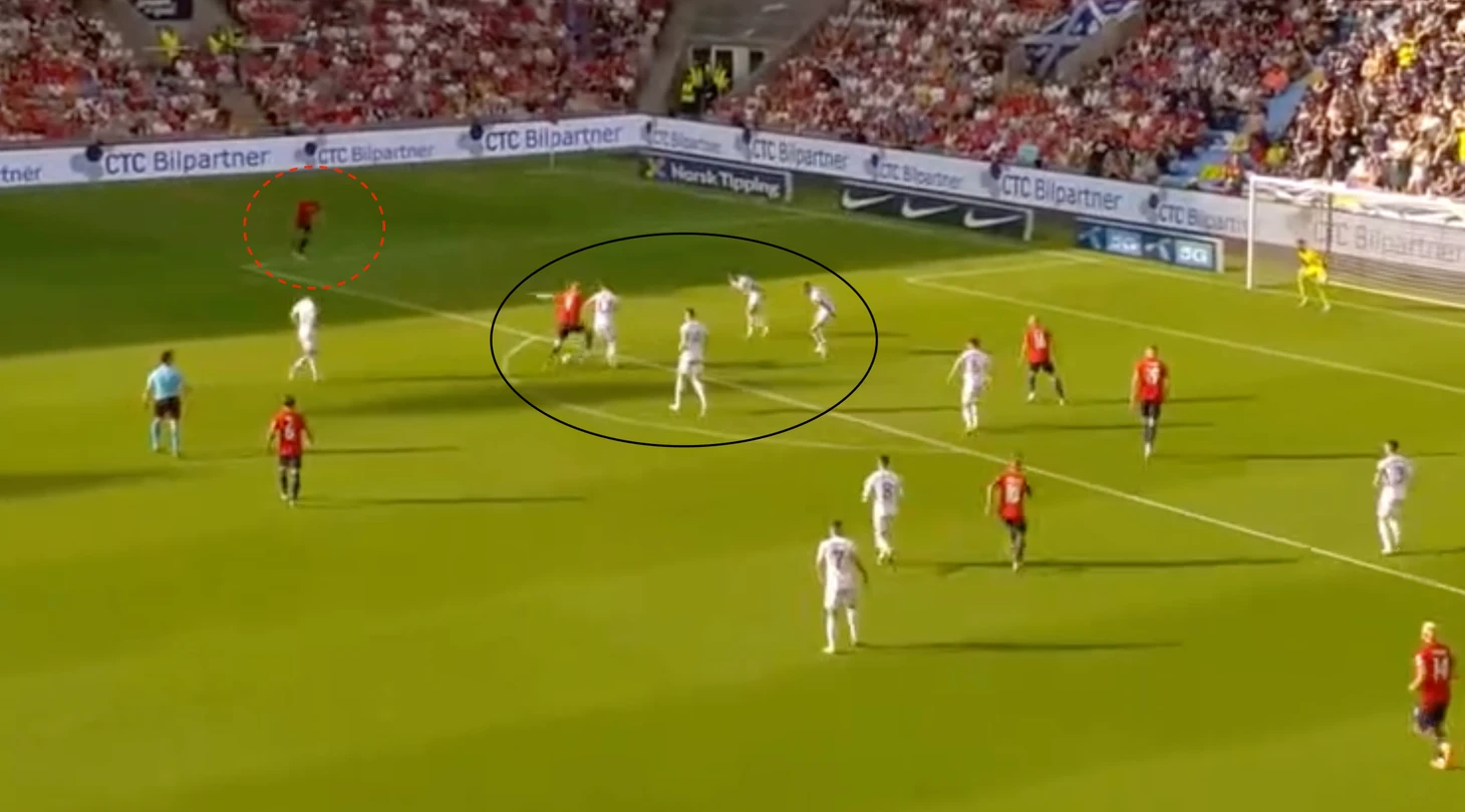Стив Кларк старается максимально насытить центральную зону, чтобы минимизировать возможность прорыва соперника в наиболее уязвимых местах. А как же фланг? Видимо, пока Аарон Хики и Эндрю Робертсон справляются, проблемы нет.