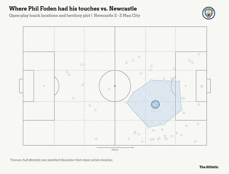 Его продуктивность можно объяснить измененной позицией, предоставляющей ему свободу действий в центре поля в отсутствие Де Брюйне. 37 касаний в центральной трети поля против «Ньюкасла» - это 3-й лучший показатель в его карьере в Премьер-лиге, и 42, которые он сделал дома против «Шеффилд Юнайтед» на прошлой неделе, занимают 2-е место.