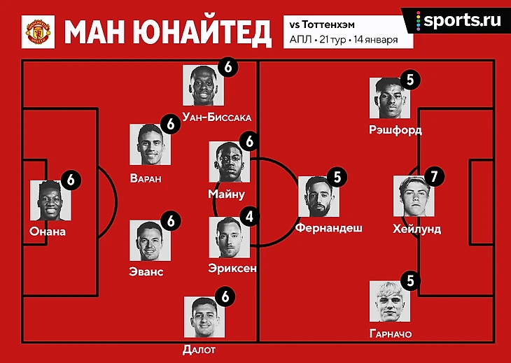 Эриксен и Рэшфорд худшие. Рейтинг игроков «МЮ» в матче с «Тоттенхэмом» (2:2)