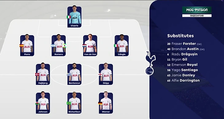 У Тоттенхэма немного интереснее и больше изменений. Наконец-то на поле появились центральные защитники, и даже не один, а двое. Эмерсон кстати отправился на замену. В остальном привычные лица. Большая потеря - это Сон, но на его место вышел новоиспеченный игрок, которого австралийский тренер решил пустить в бой сразу же.