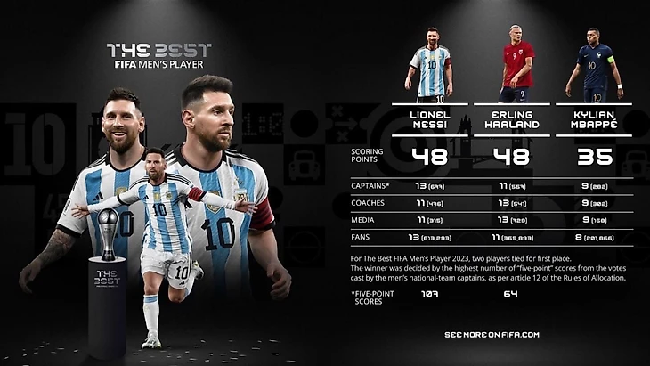 У Месси и Холанда равное количество очков в опросе, все решил дополнительный показатель