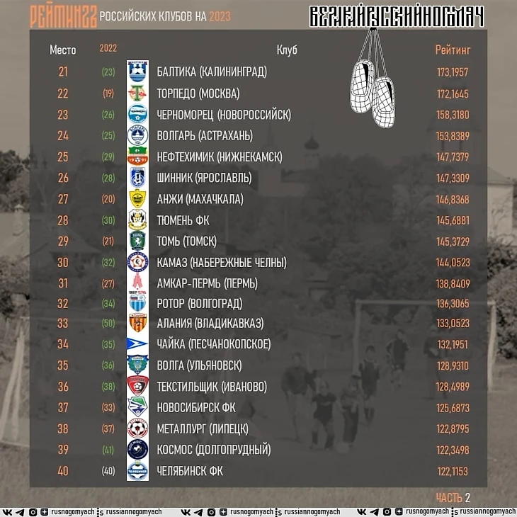 Алания вернулась в топ 40, а также достаточно много клубов, которые прибавили за этот сезон.