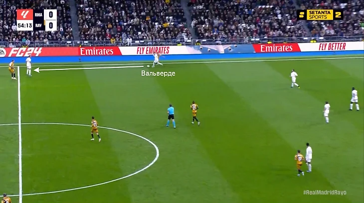 Ему привычно достались задачи правой восьмерки с широким функционалом. Федерико открывался в полуфланге, иногда менялся местами с Беллингемом или шел широко.