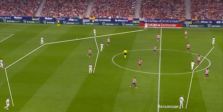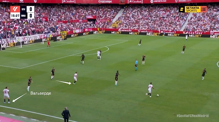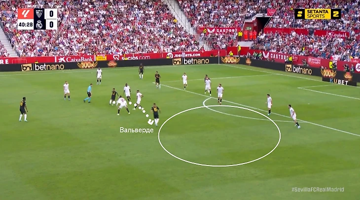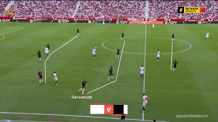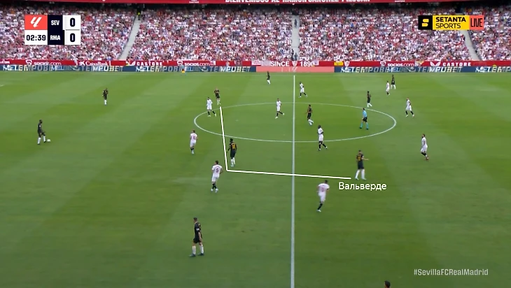 Возьмем более свежий пример. В игре с «Севильей» при владении Вальверде формировал центр поля вместе с Кроосом и Орельеном Тчуамени.