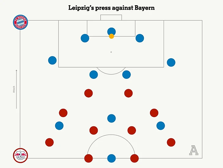 В субботнем матче за Суперкубок Германии «РБ Лейпциг» — команда, которая обучена тактике прессинга, как никто другой, — поймала Конрада Лаймера, своего товарища по команде в прошлом сезоне, а теперь выступающего за «Баварию», при получении мяча с закрытым корпусом…
