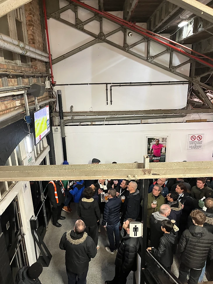 Толкотня начинается уже у входа на стадион: улица разделяющая «Крейвен Коттедж» и жилой квартал, недостаточна широка и переполнена фанатами, через которых пытаются протиснуться несчастные прохожие. В итоге у нас с сыном заняло десять минут только, чтобы только пропихнуться к нашему входу на стадион, а затем мы зависли к гейту, которая почти не двигалась - турникеты похоже здесь тоже не обновлялись с 19-го века.