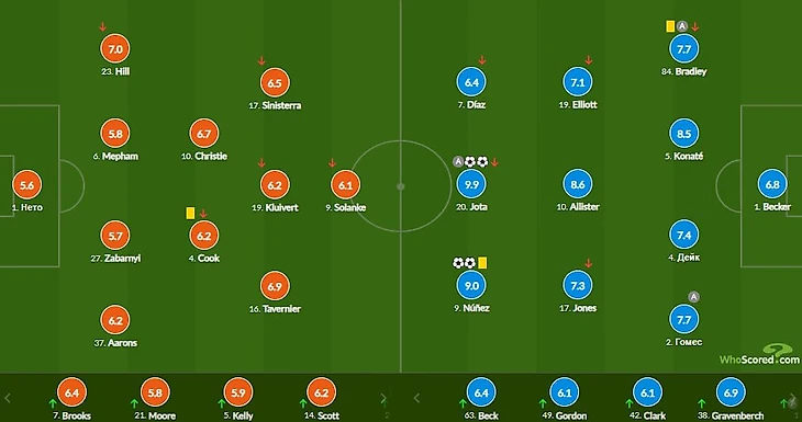 Удивительное рядом. Очередная непоследовательность от английских судей. В менее жесткой ситуации в этом сезоне удаляли того же Макаллистера, к примеру. А тут даже без карточки обошлось. Хорошо, что Диас хотя бы игру продолжил.