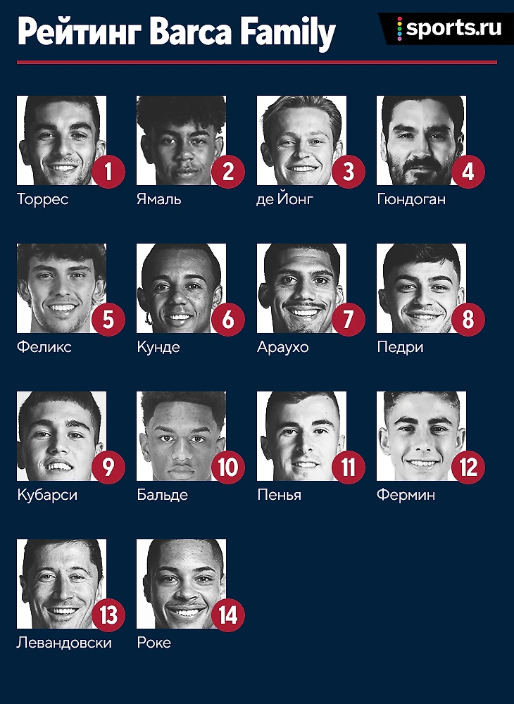 14. Витор Роке – все еще не может влиться в команду. 13. Роберт Левандовски – за 60 минут не смог ни разу пробить по воротам соперника, 8 раз потерял мяч, 2 раза попал в офсайд и отдал всего 5 точных передач из 12. 12. Фермин Лопес – выходил с похвальным уровнем напора, но в остальном пока все очень скудно.