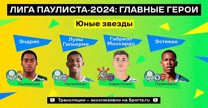 Sports.ru – вещатель бразильской лиги Паулиста. Там играют «Сантос» и «Коринтианс», зажигает Эндрик, а тренирует Моцарт