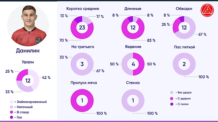 62% действий Данилина приходились на атаки, завершавшиеся ударами по воротам.