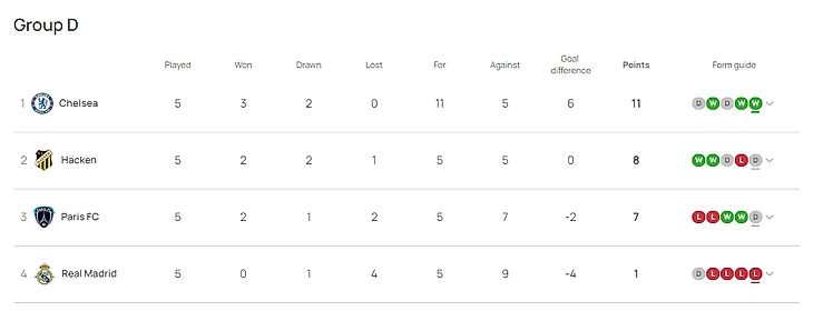 Положения в группах после пятого тура женской Лиги чемпионов 2023/24: