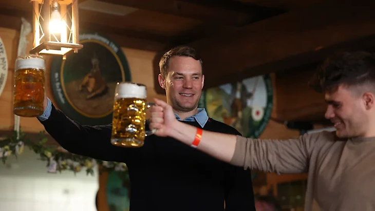Мануэль Нойер отправился в гости к фан-клубу «Баварии» из города Тегернзе. Местные поклонники Рекордмайстера встретили голкипера традиционными баварскими забавами. Журналисты Bild сообщают, что Ману занял первое место в соревновании по держанию пивной кружки на вытянутой руке.