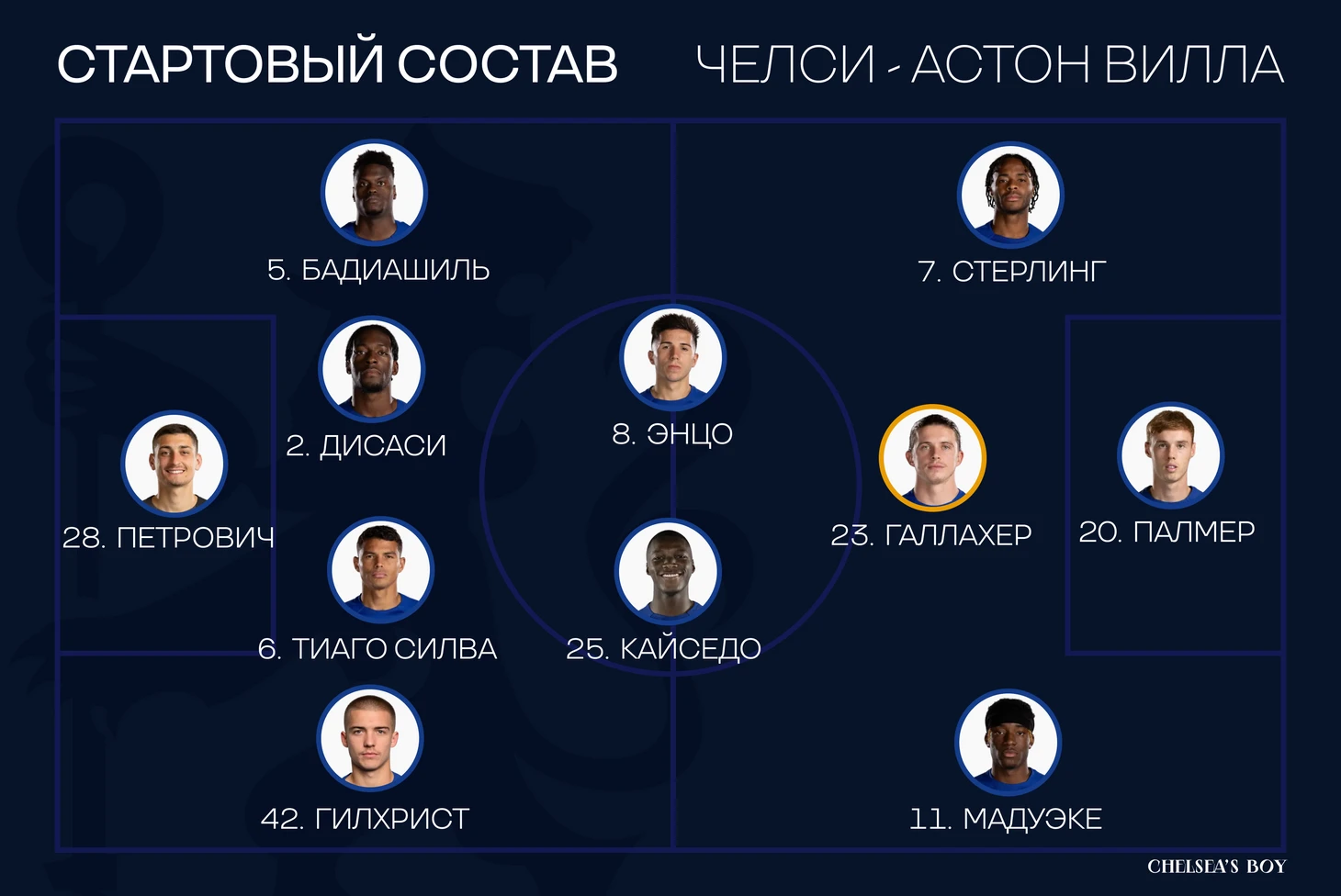 Еще до матча у Челси произошло одно важное изменение – травму получил Колвилл, и вместо него вышел Гилхрист. На мое удивление, с первых минут появился Мадуэке, а Палмер занял рискованную позицию нападающего. Глядя на состав, матч обещал быть интересным.