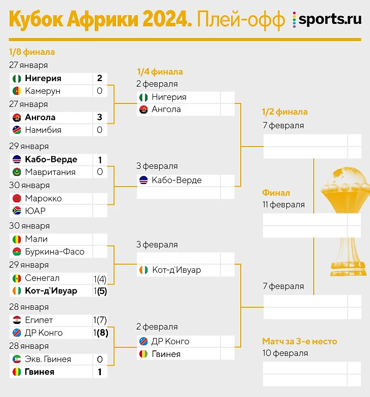 Кессиэ реализовал пенальти. Матч ушел в дополнительное время, где команды обменялись опасными моментами (у Орье и Мане), но не забили. В серии пенальти победил Кот-д’Ивуар, реализовав все пять ударов (5:4). У Сенегала промазал Ньякате – это конец для фаворита турнира!