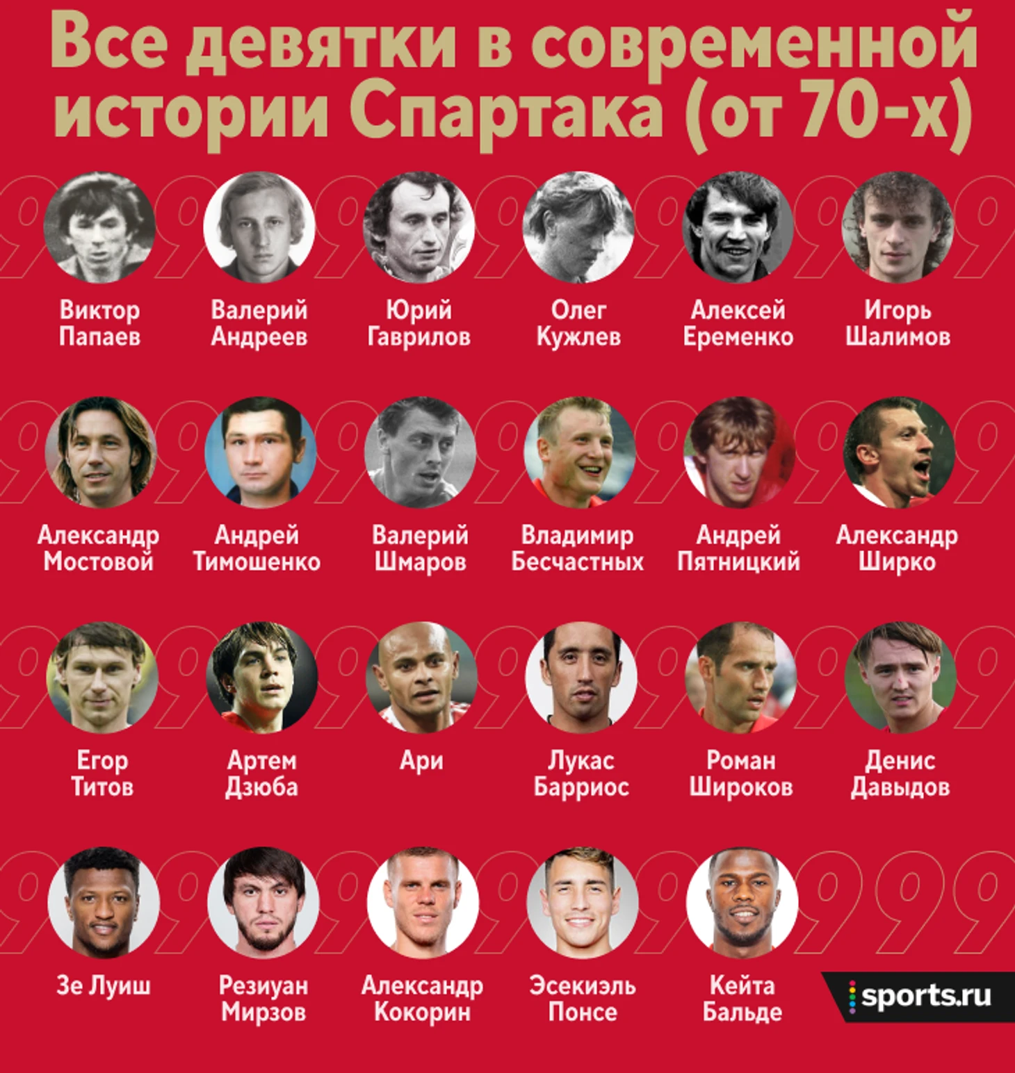 Все девятки современного «Спартака»: от Папаева и Титова до Кокорина и Бальде