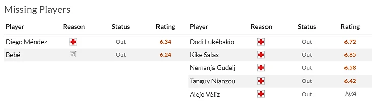 Что касается гостей, то из Пальмаса никто никуда экстренно не вылетал, даже наоборот, останутся дома: травмированный Бенито Рамирес(6) и дисквалифицированные Араухо(5,5) и Муньос(6).