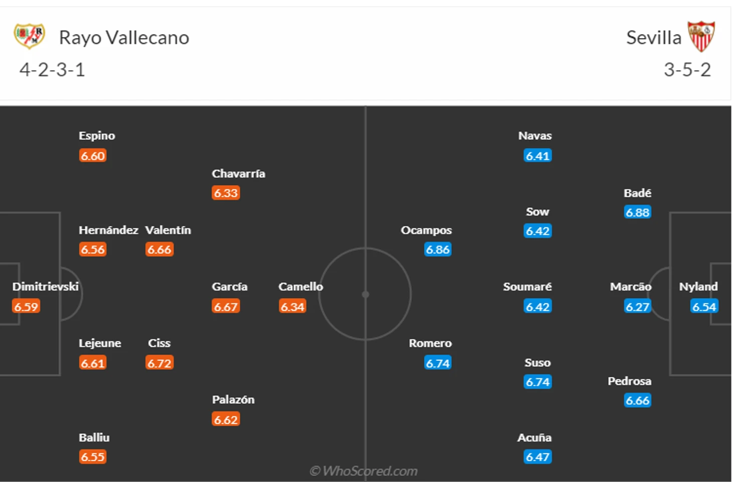 Кого брать: Хозяев. Севилья все еще плавает и ищет себя и на Эстадио Вальекас андалусийцам будет трудно. Поэтому имеет смысл сыграть через Лежена(5,5) с Дмитриевски(5,5) или Альваро Гарсию(7,5) с Паласоном(7,5).