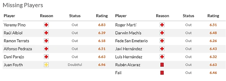 Что касается Осасуны, по памплонцы на газон не жалуются, а единственная плохая новость – переход в Бетис Чими Авилы(7). Ну и дисквалификация Унаи Гарсии(5,5) за две желтые карточки, полученные в матче с Барсой.