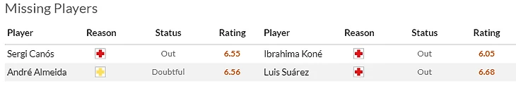 Что касается остальных мышиных юнитов, то у них с контрактами все нормально, но из-за травм не сыграют завтра Алмейда(7) и Коррейя(5,5), а у гостей Луис Суарес(7) так лихо форсировал свое возвращение на поле, что снова угодил на операционный стол и видимо закончил сезон досрочно.