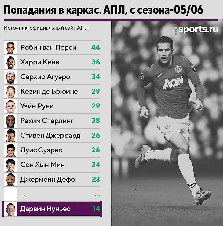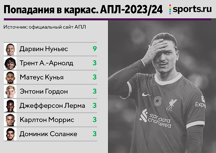У Дарвина впечатляющий темп. Всего за полтора сезона он вошел в топ-50 самых бьющих в каркас за всю историю ведения этой статистики в АПЛ. Сейчас Нуньес занимает 42-е место, но первая десятка не так уж и далеко.