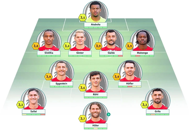 «Фрайбург»: Atubolu - Sildillia, Ginter, Gulde, Makengo - Eggestein, Röhl - Weißhaupt, Höler, Grifo (c) - Gregoritsch