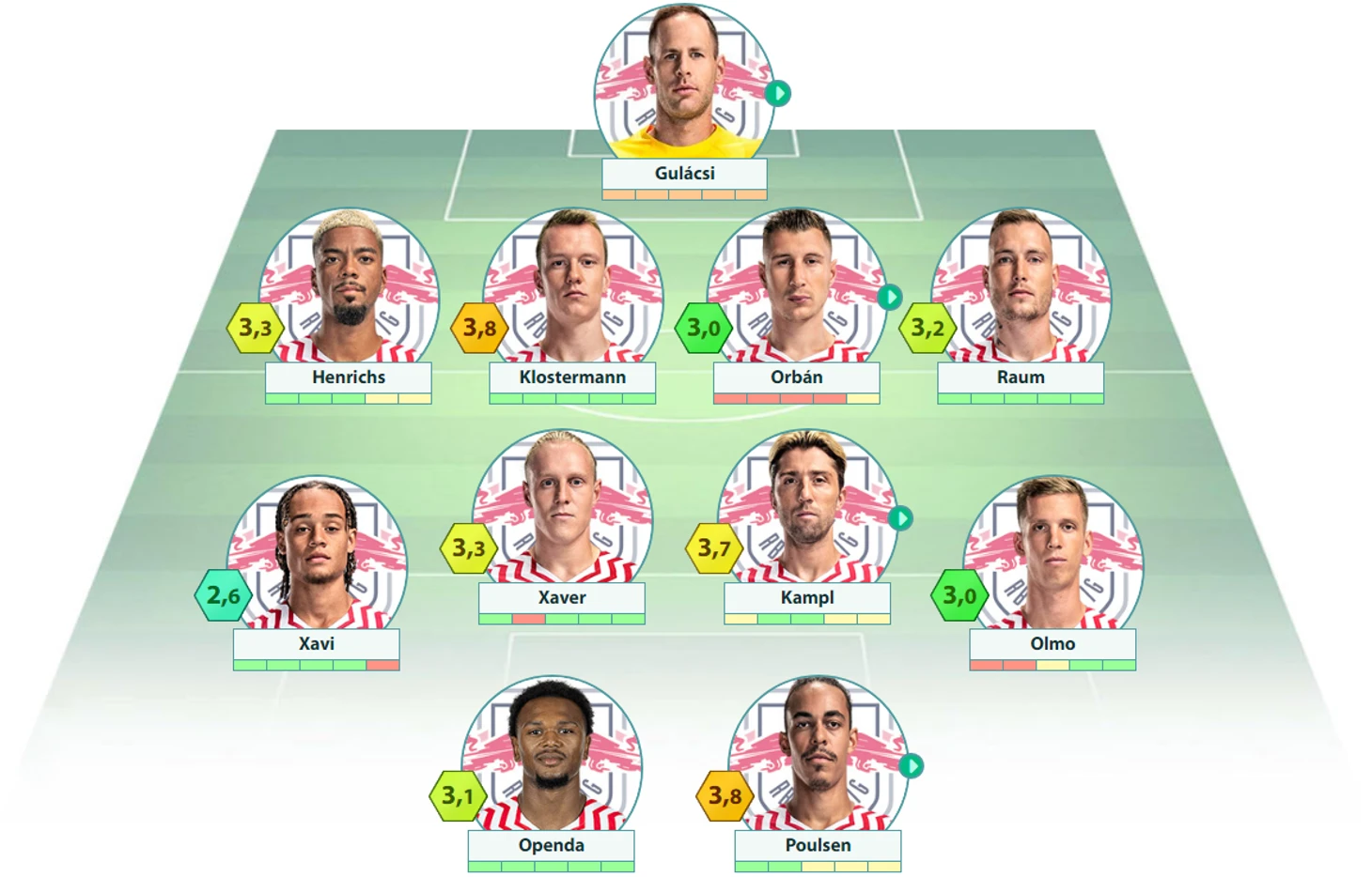 «РБ Лейпциг»: Blaswich - Henrichs, Klostermann (c), Lukeba, Raum - Xavi, Seiwald, Schlager, Olmo - Šeško, Openda