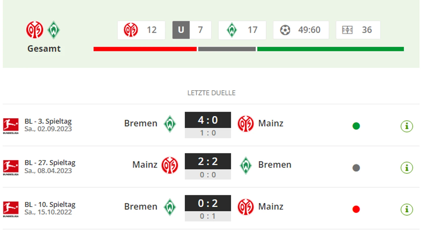 - «Вердер Бремен» недавно впервые в сезоне Бундеслиги выиграл две игры подряд. «Зелено-белые» не проигрывают уже шесть игр (три победы, три ничьи). Это самая длинная беспроигрышная серия с тех пор, как они снова вернулись в Бундеслигу в 2022 году.