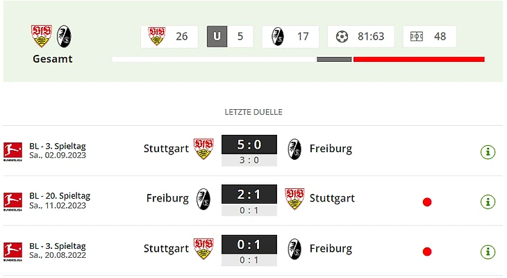 - «Фрайбург» не проиграл в семи домашних матчах и проиграл только одну из девяти игр на глазах у своих фанатов дома (пять побед, три ничьи).