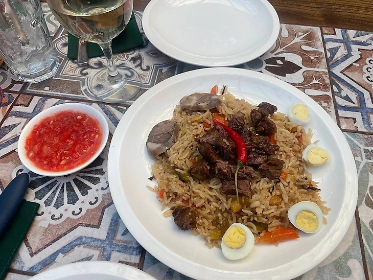 Вкусно, но совершенно ничего особенного. Плов вообще ни о чем, если сравнить с Узбекистаном. Может второй раз бы сюда специально и не пошел. Цены показались завешенными, а в чеке добавляют 15% за обслуживание. Атмосферности нет, возможно, это моя ошибка, т.к выбрал точку в ТЦ «Бишкек-Сити». Но куда же в Центральной Азии без плова. Поэтому идем в Центр плова. В Бишкеке их несколько, я выбрал ЭТОТ.