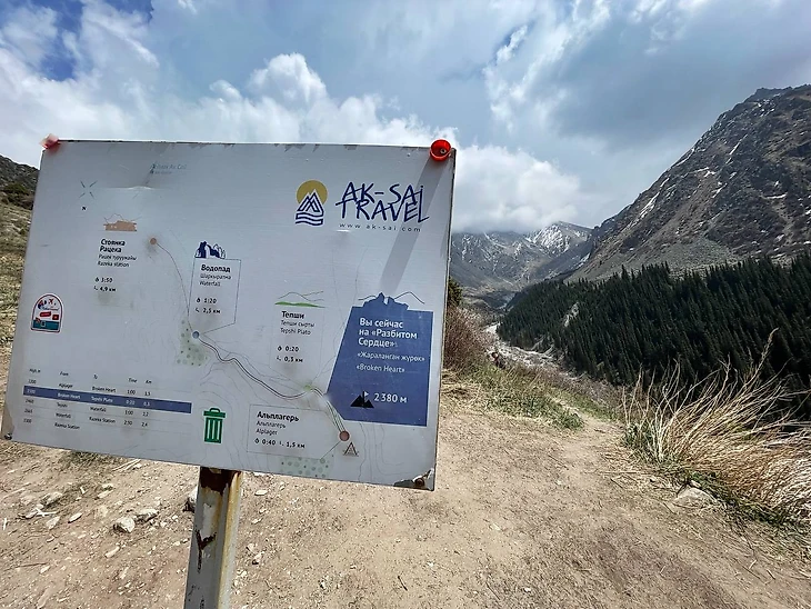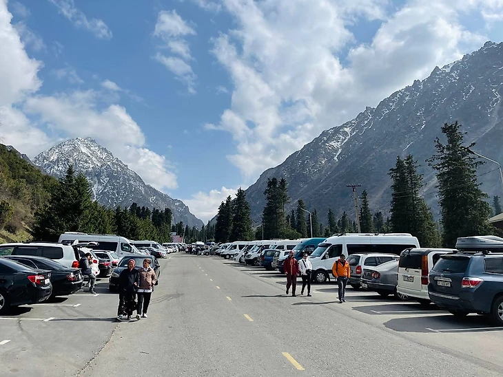 Не рекомендую ехать на такси, т.к цена из центра Бишкека ~ 900 сом. Цена за въезд на территорию национального парка за легковую машину - 700 сом. От въезда на территорию до альплагеря (начало пешего маршрута) - 11 км, т.е не платить за въезд не вариант и самое проблемное будет уехать отсюда. Яндекс заказать почти нереально - нет машин, а водилы, стоящие на территории парка заломят вам ~ 2000 сом. Итого лучше заплатить 750 сом и поехать в группой в комфорте.