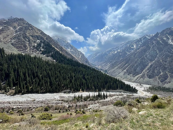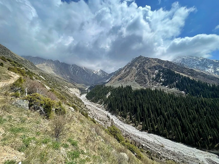 Это вообще существенная природная часть страны. Одна из самых известных природных достопримечательности страны - Ущелье Ала-Арча расположено в 41км от Бишкека и является природным парком.