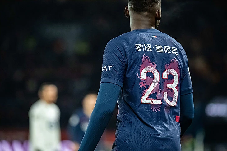 Парижане обыграли «Лилль» (3:1) в специальной форме: надписи на спинах на мандаринском, а номера игроков обвевает дракон.